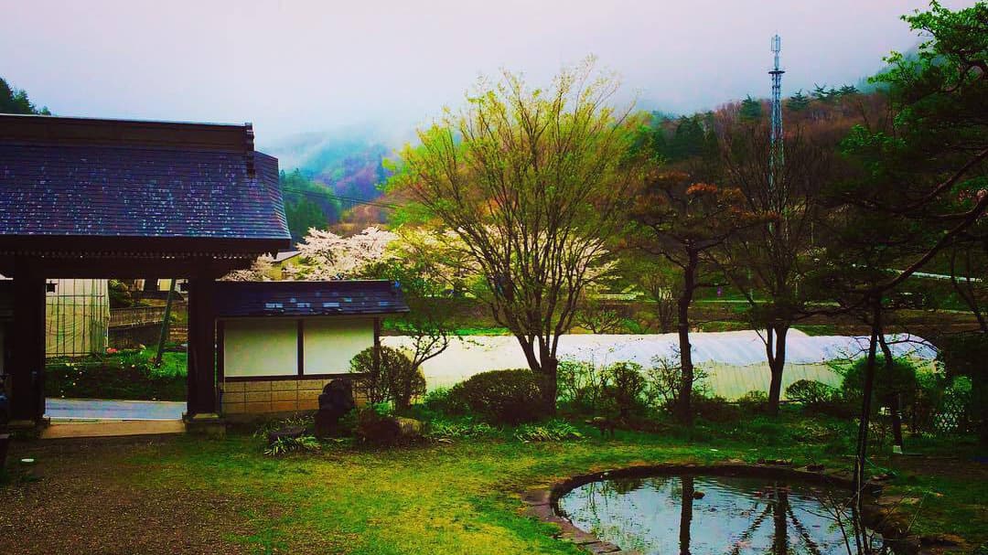 山門に続くこの道は、藩政時代、盛岡と太平洋沿岸を結んだ遠野街道の名残りだ。ここから東に山峡の道をたどると、盛岡藩の鋳銭座の跡があり、近くには弥生人骨が発掘され、脚光を浴びたアバクチ洞穴がある。この辺り一帯は中世より有数の産金地だった。